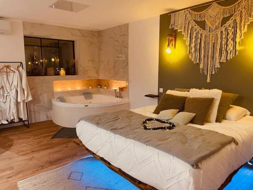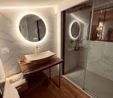 L'Apesanteur is located in Saint-Vincent-sur-Jard, just a 19-minute walk from Belestat Beach and 1.7 miles from Plage de Boisvinet. Located around 9.2 miles from Port Bourgenay Golf Club, the villa is also 16 miles away from Olonnes Golf Course. The villa has a sun terrace and a hot tub. This air-conditioned 1-bedroom villa comes with a dining area, a flat-screen TV, and a fully equipped kitchenette with a dishwasher. A private entrance leads guests into the villa, where they can enjoy some wine or champagne and chocolates or cookies. The property has an outdoor dining area. There is an on-site coffee shop. Guests at the villa will be able to enjoy activities in and around Saint-Vincent-sur-Jard, like walking tours and bike tours. The nearest airport is La Rochelle - Île de Ré Airport, 45 miles from L'Apesanteur.