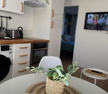 L'Appartement Vert offers accommodations in Douai, a 10-minute walk from Douai Train Station and 2.1 miles from Ecole des Mines de Douai. The property is around 16 miles from Bollaert-Delelis Stadium, 16 miles from Louvre Lens Museum, and 17 miles from Train Station of Cambrai. Zenith Arena Concert Hall is 25 miles from the apartment and Coilliot House is 25 miles away. With free Wifi, this 1-bedroom apartment offers a flat-screen TV, a washing machine, and a fully equipped kitchen with an oven and microwave. Towels and bed linen are featured in the apartment. The accommodation is non-smoking. Pierre Mauroy Stadium is 24 miles from the apartment, while Lille Grand Palais is 25 miles away. Lille Airport is 21 miles from the property.