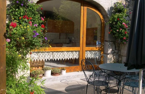Terraced house to the owner. DRC: studio (1 bed 2 pers.), wifi, bathroom, large terrace full South with garden furniture, land. Linens provided. Ski resort le Colombier. Baths Aix les Bains. Lac du Bourget 8 km. Beautiful old house renovated in stone near the Bourget lake. Hamlet overlooking Poplar Grove and Chautagne vineyard. Sector quiet. Pleasant and well equipped cottage decorated with care. South orientation. Beyond the garden mountain views.