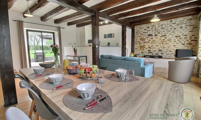 Your vacation rental includes on the ground floor: large living room with fitted kitchen, a bathroom (shower and toilet). Upstairs: 3 bedrooms (1 bed 140x190) (1 bed 140x190) (2 beds 90x190), bathroom (shower) and separate toilet. In front, private courtyard with garden furniture and relaxation lounge, at the back, terrace with another garden furniture. Large common landscaped ground available with games for children, bowling green...parking in the car park at the entrance to the property, located a hundred meters away. First outbreak offered from November to March. 1 km from the town of Pluduno, in the countryside on a beautiful landscaped property of one hectare, set of 6 gites each with a well-equipped terrace. The property is magnificent and everyone will find their corner of privacy. The Arguenon gite, adjoining 2 other gites, welcomes you comfortably all year round. You will particularly appreciate the 2 terraces: ideal depending on the sunshine! According to their desires, the youngest can meet up on the common playground. During your stay, a multitude of walks are available to you. Starting with Plancoët (all shops) 4 km away, a pretty little flowered town known for its mineral water. If you prefer the coast, you will reach the port of Guildo 7 km away, built on an old Roman road, the beach of Vauvert in Saint-Jactut de la Mer is 9.5 km away. Fans of beautiful family beaches, you will love Saint-Cast-Le Guildo and its marina 11 km away. St-Malo 28 km away.