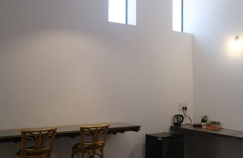 Relax in a spacious 50+ sqm studio just 300m from Ozran Beach, GOA. Enjoy high-speed WiFi, a private veranda, lush garden, and an on-site restaurant—perfect for work or leisure.