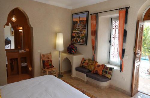 L’oasis de kima in Taroudant provides adults-only accommodations with an outdoor swimming pool, free bikes, and a garden. This guest house features a shared lounge. There's free private parking, and the property provides a paid airport shuttle service. The units at the guest house feature private entrance and soundproofing so guests can enjoy a peaceful stay. Each room is equipped with a private bathroom, a safety deposit box, and free Wifi, while some rooms are equipped with a terrace and some have garden views. Additional in-room amenities include fruit. Guests can eat at the on-site traditional restaurant, which is open for dinner and cocktails. Guests at the guest house will be able to enjoy activities in and around Taroudant, like bike tours. The nearest airport is Agadir–Al Massira Airport, 37 miles from L’oasis de kima.