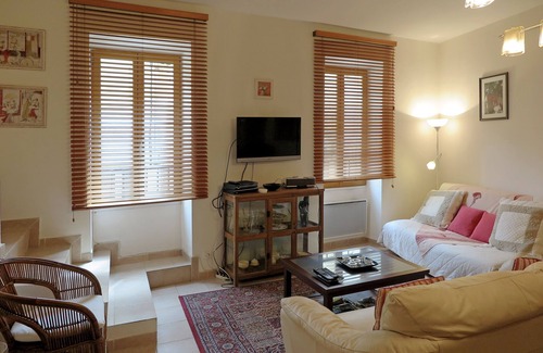 Arriving at this home through an elegant iron double gate - which gives a sense of security - into the ground floor vestibule, there is a noticeable feeling of charm and serenity. The elegant entryway takes you upstairs (from the “Rez-de-chaussee” or street level), to a light, bright great room. Very stylish, it was recently remodeled and decorated for comfort. The great room is a combination of Living, Dining and a very well appointed Kitchen.