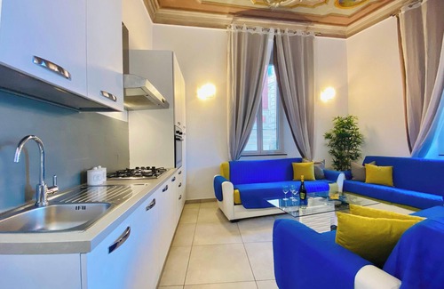 Apartment is located in front of the sea with a balcony overlooking the main historical monument of Rapallo, the old Medieval Castle .