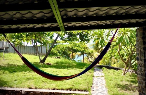 There is a large covered terrace with hammocks on the front of La Casita for chill'n out of the tropical sun and watching the surf and soccer action on the beach.