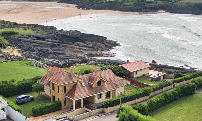 Featuring a garden, La Casona de la Playa features accommodations in Ajo. This beachfront property offers access to a balcony, free private parking, and free Wifi. The villa offers an indoor pool, hot tub, and a shared lounge. Offering a terrace and garden views, the spacious villa includes 5 bedrooms, a living room, flat-screen TV, an equipped kitchen, and 4 bathrooms with a hot tub and a bidet. Guests can take in the ambience of the surroundings from an outdoor dining area. For added privacy, the accommodation features a private entrance. Guests can make the most of the warm weather with the property's barbecue facilities. Playa de Cuberris is a 7-minute walk from the villa, while Santander Port is 25 miles away. Santander Airport is 24 miles from the property.