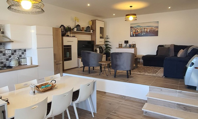 La Dolce Vita apartment is situated on a hill top with beautiful views of the Velebit mountain range and the Novigrad Sea. It has all the luxury and amenties for an enjoyable and relaxing stay. The open plan kitchen and living areas are tastefully decorated and the bedrooms have King Sized beds. It has air conditioning and Smart Flat Screen TV's in all rooms. The outdoor garden area has a barbeque and a dining area and a fire pit with seating for those relaxing nights by the fire.