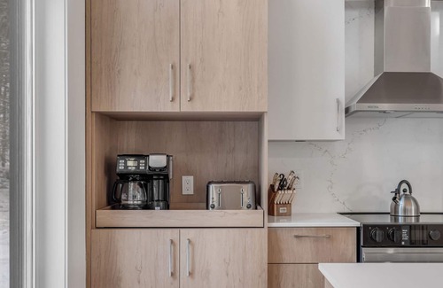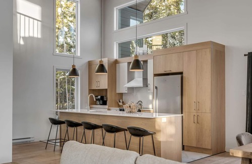 Our guests have access to the entire chalet and all its amenities. You can also enjoy the shared spaces, including the outdoor terrace with a firepit, the heated pool (summer only), the spa, and the sauna.