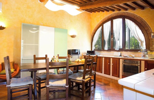 The beautiful fenced park surrounding the house, that measures about 12.000 square metres, is full of hedges marking the border and characteristic cypresses, the symbol par excellence of Tuscany. The well-kept English lawn has many paths flanking the house with areas of natural shade and lush fragrant plants like roses, oleanders and herbs. The external dining area is located between the house and the pool.Please notice that photos are taken in spring, therefore flower blossoming, and the colours of the gardens' grass could be different at the moment of your arrival at the villa.
