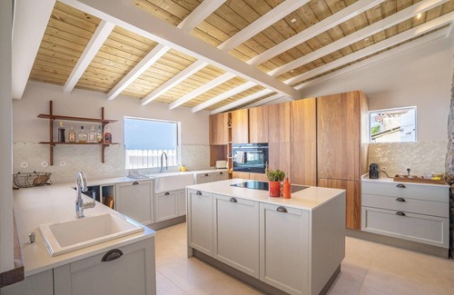 => 5 comfortable bedrooms: four air-conditioned bedrooms on the ground floor (three with king-size beds and one children’s room with bunk beds). Master suite upstairs offering a spectacular sea view.