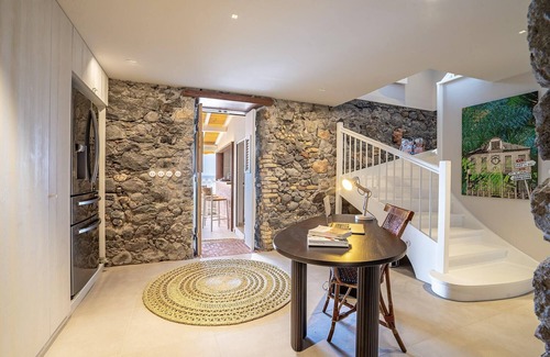 => Complete renovation in 2023: exposed stone walls, new floors, new framework, and roof. All systems (electricity and plumbing) are brand new.