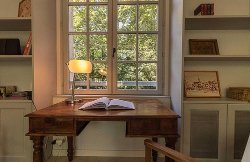 "La Mouline" is a charming cottage housed in the former watermill of the Secourieu estate, in the heart of this magnificent property's 12-hectare park. A few meters away, the hunting lodge, listed as a Historic Monument, overlooks the stream and houses a lounge-library area that completes the ensemble. A private Nordic bath is located in the shade a few meters away. Several terraces allow guests to relax or enjoy their meals (there's always one in the shade!). This two-bedroom cottage has been designed to accommodate couples or families year-round, lovers of heritage and seeking peace, nature, and relaxation. Guests have the privilege of wandering around the historic park at their leisure. The cottage has separate access from the owners, who live in the main building (without any overlooking view of the cottage, which is isolated in another part of the park). The owner can offer guests a guided tour of the park, as well as a massage at home provided by a qualified professional. Cintegabelle is 6 km away, Auterive less than 2 km away (all shops and services). Toulouse is 40 km from Le Secourieu. The house is comfortable, well-equipped, and decorated with care and refinement. On the ground floor: living room (wood stove), kitchenette, small laundry room, separate toilet. Upstairs: 2 bedrooms, each with their own private bathroom (1 double bed (160x200cm), shower room/WC) (2 twin beds (90x200cm), shower room, separate toilet). Wi-Fi internet access. Reversible air conditioning. The pavilion offers a relaxation area (TV, games, stereo) and an office (ideal for teleworking!)