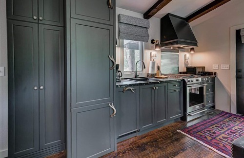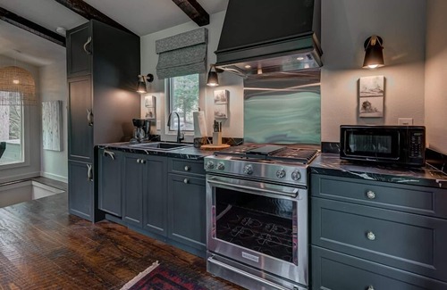 Kitchen - fully equipped main level kitchen, stainless steel appliances, oven, custom cabinets, custom laminate countertops, kitchen utensils, microwave, crockpot, coffeemaker