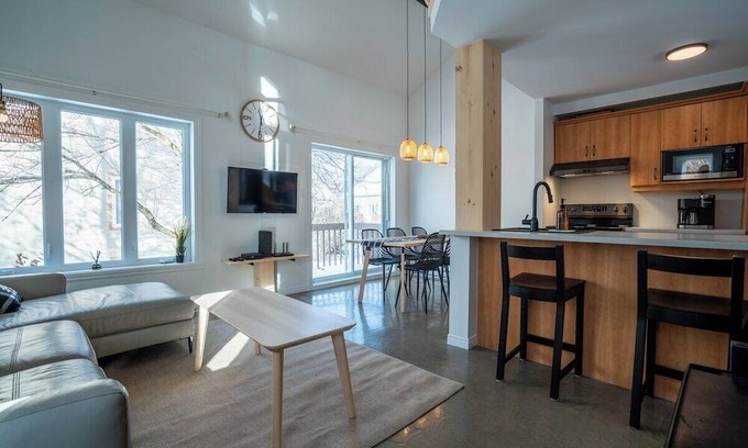 The Rossignol 1907 is a row house located in a peaceful area 1 minute from Mont-Sainte-Anne. A perfect spot to spend time with friends and family. Fully equipped and welcoming, complemented by a beautiful fireplace in the main living room.