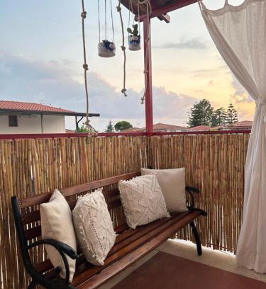 BathroomToilet paper, Toilet, Body soap, Towels, Hairdryer, Shower, Bathtub or shower, Bathrobe, Bidet, Private bathroomMedia & TechnologyTV, Flat-screen TVGeneralTrash cans, Carbon monoxide detector, Private entrance, Fire extinguisher, Mosquito net, Fan, Iron, Interconnecting room(s) available, Key access, Tile/Marble floorKitchenOven, Dining table, Kitchenette, Kitchen, Refrigerator, Kitchenware, Stovetop, Washing machineOutdoorsTerrace, Outdoor dining area, Balcony, Outdoor furnitureLiving AreaDining area, Sitting area, SofaBedroomWardrobe or closet, LinensAccessibilityUpper floors accessible by stairs onlyBuilding CharacteristicsPrivate apartment in building, Semi-detachedRoom AmenitiesDrying rack for clothing, Socket near the bed, Sofa bed, Clothes rack, Non-feather pillowEntertainment & Family ServicesBaby safety gates |