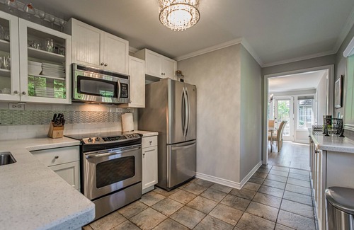 La Vignette is a beautifully remodelled bungalow home, with a fully furnished back porch and deck with lots of seating to relax and enjoy with friends and family. Lots of mature gardens and space will make this a bonus area for you to enjoy. The backyard is fully fenced and surrounded by trees and bushes for your privacy and for the safety of your pet. Prices are subject to change daily.-3 Bedrooms – 1 King bed and 2 Queen beds-2 Bathrooms – Walk-in shower ensuite and walk-in shower (with heated floors) -Hosts up to 6 guests (including infants and children)-Private parking for up to 2 vehicles, contactless check in-Dog friendly (one adult dog - $100 pet fee; a portion of the pet fee goes to support our local pet rescue - Angel's Rest)-Gas fireplace, central heating, and air conditioning-High speed WiFi and TV in living room and each bedroom with cable channelsUpon entering La Vignette, you will notice a closet for your coat and outdoor gear! From there you will see a formal dining room and the kitchen. The Dining Room has a large glass table with French doors that lead to the backyard. The backyard space boasts a tranquil oasis for you to BBQ and relax while enjoying one of Niagara-on-the-Lake’s finest wines.The Kitchen has granite countertops and all kitchen equipment for cooking or serving:-Drip-coffee maker, French press coffee maker, and kettle with enough coffee, tea, and sugar to get you started-Stove, oven, fridge, microwave, toaster, and dishwasher-Dishes, pots and pans, silverware and glasses (including wine glasses) -Non-stick spray, paper towels, dish soap, tea towels, dish cloths-Salt and pepperA breakfast bar can be enjoyed while having your morning coffee and watching the cook prepare a wonderful breakfast. The kitchen has everything you need to make meals, or you can always order take-out and serve it like you made it yourself!Just past the kitchen is a warm and wine inspired living room area which includes a flat screen TV, gas fireplace, and an amazing wine barrel end table. There is also an area for you to sit and play games or cards with a breathtaking view of the front gardens.Off the living room are two bedrooms featuring Queen beds with pillow top mattresses and quality linen and pillows which makes these bedrooms comforting and inviting. Both bedrooms have a flat screen TV. The highlight of this spectacular home is the primary bedroom with a king sized bed including a memory foam top for your comfort. A barrel chair is in the nook of the bedroom for those avid readers! Enjoy the flat screen TV, and plush pillows. The primary bedroom also boasts an ensuite with walk-in shower, and heated floors!There are French doors from the bedroom to the back deck. This bedroom offers lots of privacy and space and includes an office area for those who still need to work!Bedding, towels, hair dryer, facial and toilet tissue, shampoo, and hand soap are also provided.The laundry room is located in a closet just outside the primary bedroom and has a stainless-steel washer and dryer for your convenience. Supplies are on us:-Laundry soap, stain remover and dryer sheetsThe main bathroom is right across from the laundry and includes a full-body walk-in shower and heated floors..Our location really offers a total Niagara-on-the-Lake experience. We are a short walk to the Niagara-on-the-Lake golf course and Queen Street which has the most wonderful boutique shops and amazing restaurants. The house is also within walking distance to Ryerson Park which is the best place to see sunsets and the skyline of Toronto across Lake Ontario.La Vignette Cottage is a licensed short-term rental in the town of Niagara-on-the-Lake. Lic # 022-2024.We have a high standard for our homes and the housekeeping staff. -Hand sanitizer pump at each property (70% alcohol)-Disinfecting of soft surfaces with an alcohol-based disinfectant-Additional attention to disinfecting frequently touched surfaces-Disinfecting of the mattress, mattress cover, pillows, and pillow protectors with alcohol-based disinfectant