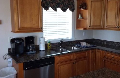 Escape to paradise in this lovely unit, equipped with all the conveniences of home. Open floor plan includes a kitchen with granite counters and stainless steel appliances. Fully equipped for meal preparation, the kitchen is stocked with mixer, toaster, microwave, crock-pot, coffee pot (Keurig Duo). The large island makes meal prep convenient and has bar stools for easy entertaining. The dining area provides seating for six.