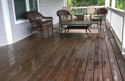 The HUGE deck on the side of the building has multiple seating arrangements and a large table and chairs to enjoy meals, snacks or play cards or board games when the weather allows. A charcoal grill is available (located under the building). Just roll out to the side yard, safely away from building and grill fresh fish from your catch or local market! Afternoons and evenings are the perfect time to catch a breeze on the deck and nap or read a book. This is also a favorite spot for drinks, a cigar or visiting with family and friends. If interested, we can connect you with a fully licensed boat captain who provides eco tours of the areas' water systems and Dolphins!