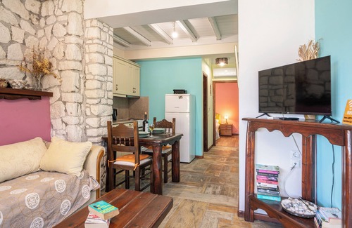 The apartments are built with natural materials -stone and wood- handcrafted by the owner with great attention to detail and furnished with care and style offering all required facilities.