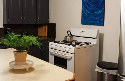 • Access to a fully equipped kitchen with stovetop, oven, microwave, refrigerator, electric kettle, and cookware