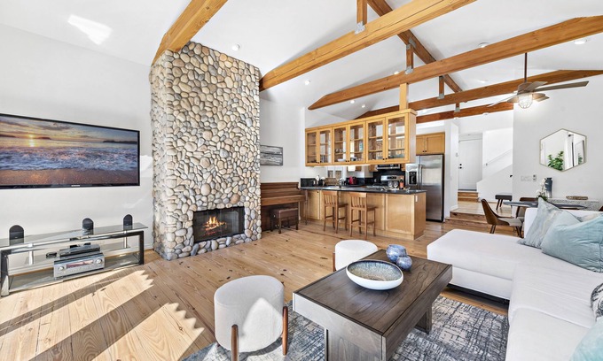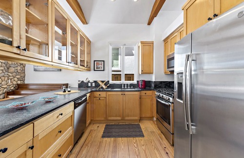 Vaulted wood-beamed ceilings greet you the moment you walk into this charming beach cottage. Appointed with colorful coastal accents throughout the home, you are instantly drawn to the beach lifestyle and are ready to experience all of the beauty and adventure that Laguna Beach has to offer. From the light and bright living room, soak in the afternoon sun through the West-facing tall, double French doors. You are lead to a private, enclosed and beautifully landscaped backyard, where you can sit and enjoy your coffee or cocktail on the back deck. Both bedrooms are on the second level, each with their own bath. Forced air conditioning and heat ensures you are comfortable in summer and winter months. Free wi-fi and space for remote work and learning is offered. Includes beach chairs, water sports equipment including kayaks and boogie boards. This charming beach cottage is located in the HIP District just steps to the beach and unique shopping and dining. Enjoy easy access to Coast Highway through the back gate. Leave your car in the garage and walk everywhere. A short stroll to the Village or take the free trolly. While in the Village, enjoy the day at Main Beach, exploring art galleries, Heisler Park, The Sawdust Festival and Festival of the Arts and Pageant of the Masters. Your days and nights will be filled with nothing but relaxation and fun. NOTE FOR YOUR SAFETY, there are security cameras located at the exterior, above the front door, and at the exterior, above the garage, that records when it detects motion by persons or animals.