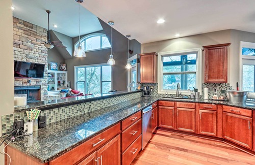 Lake days await at this spacious Waleska, GA, vacation rental! Overlooking Lake Arrowhead, this 5-bedroom, 2-bath house features a full kitchen, a kitchenette, 2 living rooms, 2 gas fireplaces, an enclosed porch with a gas grill, and plenty of community amenities. Splash around in the community pool, challenge your crew to tennis or golf, or rent a boat at the marina and cruise around the water.