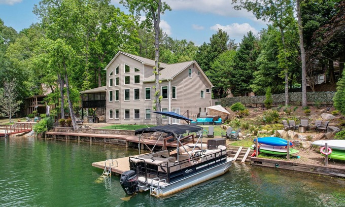 This beautiful lakeside oasis is perfect for a large family or friends looking for a getaway. Enjoy a glass of wine on the covered porch, grill some steaks on the outdoor grill / kitchen, play some pool or video games in the loft, take a kayak out for a stroll around the lake, or just enjoy some time in the hot tub. This home has everything you're looking for in lake front living. (Note: Pontoon boat rental available upon request)