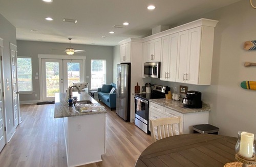 This brand new home built in 2023 is a hidden gem nestled on a fresh water lake in a newly developed gated subdivision in Carrabelle. For all the beach lovers, this property is located 1-2 miles from the beautiful Carrabelle beach. If sport fishing is your passion, you are less than a mile to the Carrabelle marina. The home has lake access via a boardwalk and dock where you can paddle board, canoe, kayak, and fish. Enjoy the inground community pool or just sit back and take in nature. Watch deer, eagles, and birds off the back patio. This little secret has something for everyone! NEED A GOLF CART, TAKE ADVANTAGE OF OUR DISCOUNTED RATES EXCLUSIVE TO OUR CUSTOMERS STAYING AT THE TRIFECTA. 1 WEEK FOR $450!