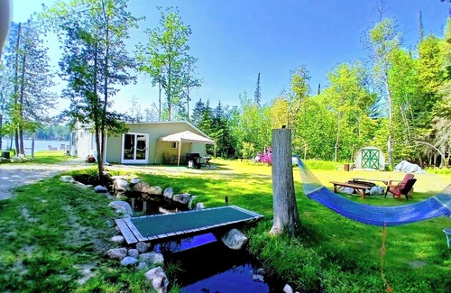 Beautiful ranch Lake Creek cabin it's on 5 lakes with a creek goes around the backyard goes out to lakes, nature walking trail big parking for trucks and trailers bring your toys lots of parking it's beautiful lake creek cabin you got both sits on a acre lots pine trees maple cedar Birch trees fall colors it's beautiful with a Creek goes around the backyard and it goes back to the lakes kitchen is stocked full pots and pans dishes silverwares seasoning paper towel and bathroom is loaded too shampoo body wash hand soap body wash the king size bed queen size beds so comfortable fresh sheets fluffy pillows got a front room and a lounging room 2 65-in smarts TV free WIFI Netflix Disney and cable it's loaded Beach area beach towels lounge chairs and beach chairs and backyard got a fire pit star glazing at night is beautiful free firewood to burn in the fire pit walking nature trail take a little walk in the backyard it's breathtaking you will love it it's a gorgeous place in the Good Vibes in the energy very very good