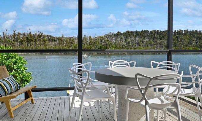 Best-rates for the Lake Conjola cabin starts from $440 per night with includes Kitchen, Laundry, Ocean View, Balcony/Terrace, Oceanfront, Child Friendly, Air Conditioner, TV, View, Security/Safety, Barbecue/Outdoor Cooking With all other amenities. Float Homes offers a wide range of floating homes, houseboats, and water chalets, ensuring each traveler finds their ideal water escape, whether planning a water getaway, a family vacation, or a pet-friendly retreat with the whole group.