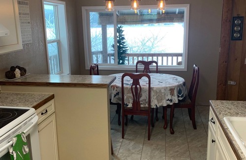 This comfortable 2 bedroom,1 1/2 bath lake front home offers a beautiful view of the lake and surrounding mountains, private dock, and hot tub. Sleeps 6-7 people comfortably. You can fish, swim, or bring your boat. Full kitchen, so bring your food or maybe go out to dinner at one of the near by restaurants . Located only a couple miles from public lands where you can use your ATV, snowmobile, go hunting, biking or hiking.
