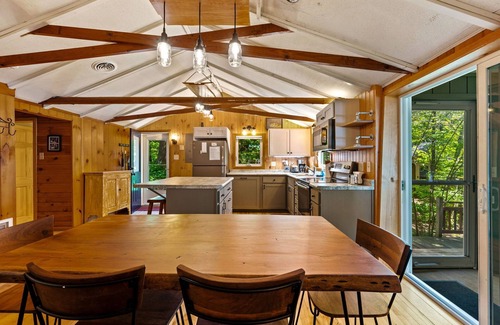 North Haven has a fully equipped kitchen, a great room with fireplace, and recently remodeled bathroom. There's a queen size bed in one of the bedrooms and a triple bunk bed in the other. The great room has a sleeper sofa. You can watch your favorite movies on a DVD player. There is wifi so that you can access email. The cottage can be heated should the weather turn unseasonably cold. North Haven is a housekeeping cottage. Blankets and pillows are there for your use. Linens and towels are not provided. Guests have access to a deck for conversation or a relaxing meal overlooking Lake Michigan. North Haven is the perfect place to unwind and step back from our busy lives.