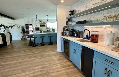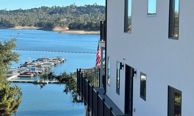 Buckim’s Cove is a brand-new, high-end lakefront retreat in the gated community of Oak Shores on Lake Nacimento. It’s designed and furnished to be perfect for family and friends gatherings. You’ll have gorgeous lake and marina views from all three levels! This stunning, spacious 6 bedroom, 3-1/2 bath home has an open gathering floor plan to create lasting memories. The gorgeous and airy living spaces provide unobstructed views of the Lake Nacimento, and high-end amenities ensure that your stay will be unforgettable. Located just a short 2 minute walk from the Main Launch Ramp, Clubhouse, seasonal swimming pool, a kids playground, and more! You won’t even need to get in your car once you arrive! This rare gem also features a private stairway leading to your own private dock at the house for parking your boat, jet skis, or maybe even hopping on one of the three, 2 person kayaks that are there for your enjoyment! Whether you’re seeking adventure on the water or simply relaxing with a book on one of the 3 sun-drenched decks, this retreat has something for everyone! The Open, Expansive Chefs Kitchen area is perfect for preparing meals together with the island seating 8, and dining table seats 12! Everyone can enjoy your meals all with a view of the shimmering lake. After a day of fun-filled activities, you can unwind in the cozy living room by the fireplace and 75in smart TV, or retreat to one of the six luxurious bedrooms for a peaceful night’s sleep. Three expansive balconies overlooking the lake provide a serene escape. The bottom floor has another large living area, with video games, puzzles, corn hole, and a 75 in TV, so kids or groups can enjoy one thing, while others are upstairs enjoying another! Whether you’re planning a family reunion, a getaway with friends, or just a peaceful escape from the hustle and bustle of everyday life, Buckim’s Cove promises a perfect blend of comfort, adventure, and tranquility.