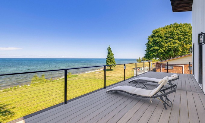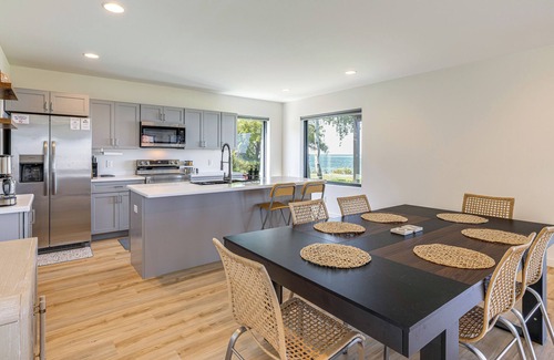 Sun and shoreline take center stage at this waterfront Lyndonville vacation rental! With views of Lake Ontario from the bedrooms, kitchen, and modern living space, this 3-bedroom, 2.5-bath home makes it easy to enjoy the area's natural beauty. Sip coffee on the deck, then spend days fishing, boating, or exploring Lakeside State Park. Later, gather for an al fresco dinner on the patio. Your next adventure awaits!