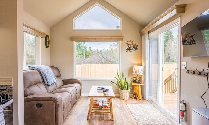 Welcome to our new cozy tiny home in Forks, WA! With sleeping arrangements for up to six guests, this inviting retreat features a lower bedroom with a full-size bed and an upper loft with two full-size beds. It's the perfect base camp for exploring the nearby hiking trails and beaches, or simply relaxing in the comfy living area or outside on the deck. Book now for a rejuvenating getaway and immerse yourself in the beauty of what our Olympic National Park has to offer.