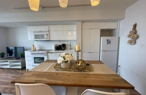 Lake & Skyview 1BR Plus Den Apartment Free Parking offers accommodations in Toronto, a 19-minute walk from Exhibition Place and 1.4 miles from Budweiser Stage. The air-conditioned accommodation is a 17-minute walk from Hanlan's Point Beach, and guests can benefit from private parking available on site and free Wifi. The property is 1.1 miles from the city center and a 8-minute walk from Rogers Centre. Providing a terrace and city views, the spacious apartment includes 1 bedroom, a living room, flat-screen TV, an equipped kitchen, and 1 bathroom with a bath and a shower. The accommodation is non-smoking. Popular points of interest near the apartment include CN Tower, Scotiabank Arena, and Toronto Symphony Orchestra. Billy Bishop Toronto City Airport is 1.2 miles away.