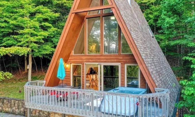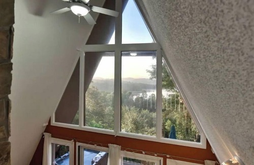 A-Frame Lake View Cabin with a Private Hot Tub, WIFI, Fireplace, & Firepit.