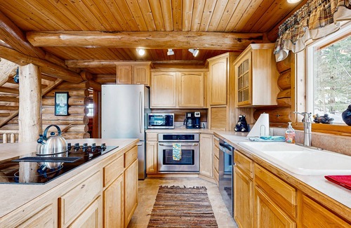 This beautiful lake view cabin makes a wonderfully cozy retreat near Lake Cascade, but still offers all the modern amenities of home! Sip your coffee among the pine trees as you step out onto the spacious deck, or curl up by the fire in the stunning living room with custom-built log features. After a long day of hiking, snowmobiling, or mountain biking, enjoy a soothing soak in the master suite's luxurious tub. There's a gas grill on the outdoor deck; this is the ideal place for fun-filled gatherings with your group.