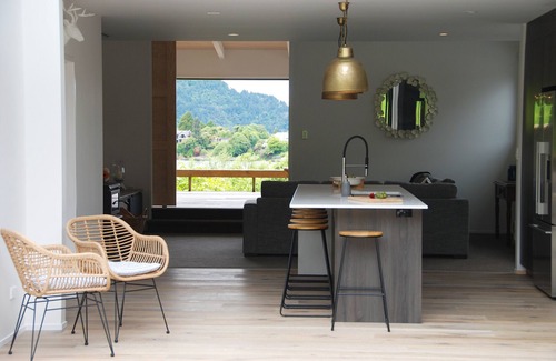 Lake View Okareka is a 4 bedroom 3 bathroom holiday home. This modern, newly refurbished holiday home enjoys a tranquil location, with sunny outdoor living, peaceful gardens, and gorgeous lake views.