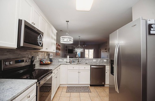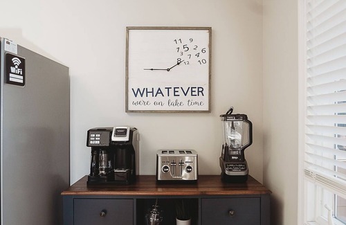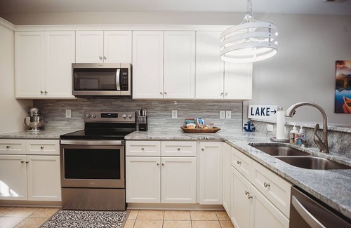 The recently renovated home comes fully furnished with all the extras! The coffee bar setup includes a regular coffee pot and a Keurig to wake up to and boasts as a wine/cocktail bar for your evening enjoyment with a Ninja blender. Comcast Xfinity password protected WiFi and tv along with Roku remotes for all TVs to unwind at night. The lake level unit provides the option of outdoor dining on the patio or relaxing in the screened in porch.