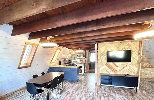 Lakefire Cabin has modern finishes, designer décor, an incredible view of the lake & just a 56 sec walk to the sandy shores of the lake. Step outside to gaze at the stars in the night’s silence & wake up to the sun peering over the water. Secluded enough to forget the sights & sounds of city life but only 20 mins from Eufaula’s downtown with shops, amphitheater, restaurants, & Jellystone (buy a day pass). Whether it’s rest, family fun, or water adventures, Lakefire Cabin is the perfect escape. This updated cabin is a perfect place for families to gather to make memories on Lake Eufaula. There is plenty of room to bring a boat in the circular driveway. You’ll have access to the whole cabin. There is a storage building on site, but it remains locked and inaccessible. We live in OKC, so we are two hours from the cabin. If an emergency happens, we can get there or contact someone local to help you. Please do not hesitate to message us. This neighborhood is so quiet. Most people are full-time residents and take pride in their space and enjoy their quiet neighborhood. LakeFire Cabin has a small circular driveway with plenty of space for two cars and a boat. As you view the pictures, please note the incline of the stairs. Children will need to be supervised and everyone should be careful. Also, due to the true a-frame structure design, doors will not fit. Curtains are provided for privacy.