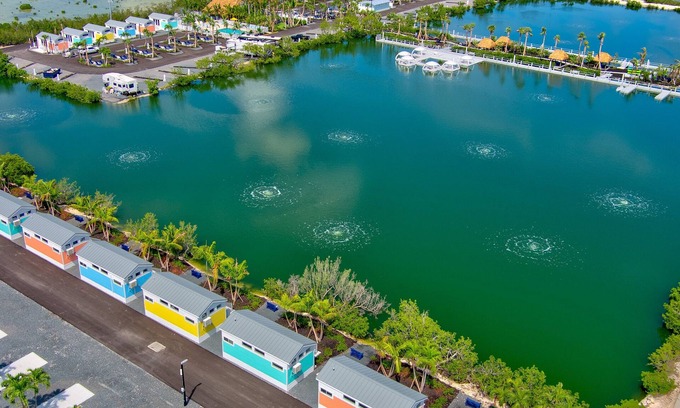Minutes to Key West's Duvall Street! Pet-friendly, lakefront glamping in The Keys. Camp in comfort on your next Key West escape in an air-conditioned bungalow. Featuring an open living room (with sleeper sofa), bathroom with shower, and a king-size bed, this vacation rental getaway sleeps 4. Our bungalows also boast patio table seating for four, Smart streaming TV, Wi-Fi, microwave, mini-fridge, and a Keurig coffee maker.
