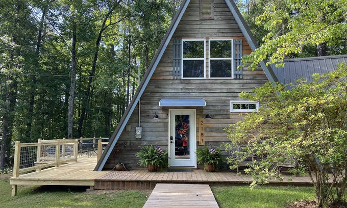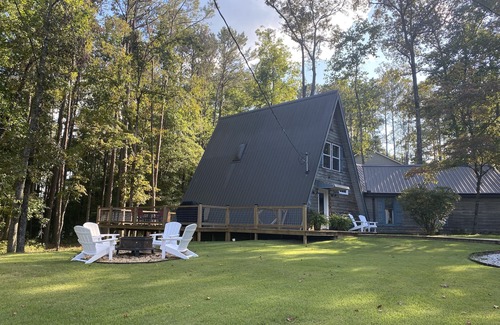 The A-Frame on West Point Lake, newly renovated and charming ! This home has a unique cabin feel on the lake! It has a very large master suite with deck access. The upstairs loft bedroom has two full beds, a daybed and sliding door to small balcony. We have provided a fire pit area for fun in the fall and winter and a gas grill for outdoor cooking! Please note this is a non-smoking property.