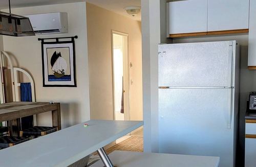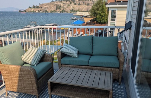 Nestled in downtown Kelowna, this delightful apartment ,right on the lake, features 2 bedrooms with 1 king bed and 1 queen bed. With amenities like AC, fast WiFi, smart TV and in-suite laundry, guests will have everything they need for a terrific stay. The kitchen is well-equipped for your convenience. Step out your door to enjoy the view or have your coffee on the patio or dock.