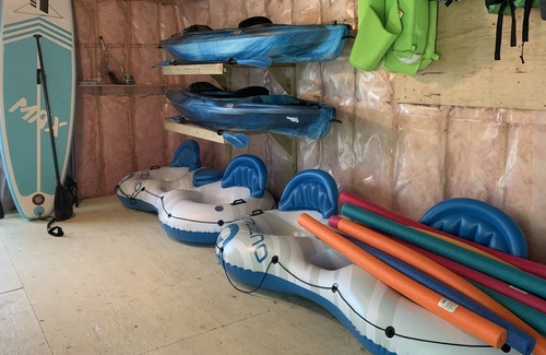 The water is about 7 feet off the dock and also offers a small beach area with shallow entry. We have an eat-in kitchen with a comfortable living room area that offers beautiful views of the lake. The large fire pit area will be the perfect spot for evening s’mores and fun around the fire! We offer a large assortment of non-motorized water toys such as a stand-up paddle board, a pedal boat, canoe, two single kayaks, and various other inflatables to enjoy our harbour of Ahmic Lake. We are interested in renting to families who want to enjoy some fun family time on the lake. Ahmic Harbour is a quiet family oriented community and in respect of our neighbours we would appreciate no loud parties.