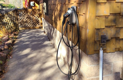 Electric car charging station on site