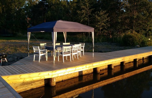 Lakefront cottage with private dock, boat, sauna and large garden with barbecue area | House in Västerås