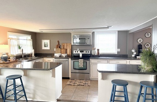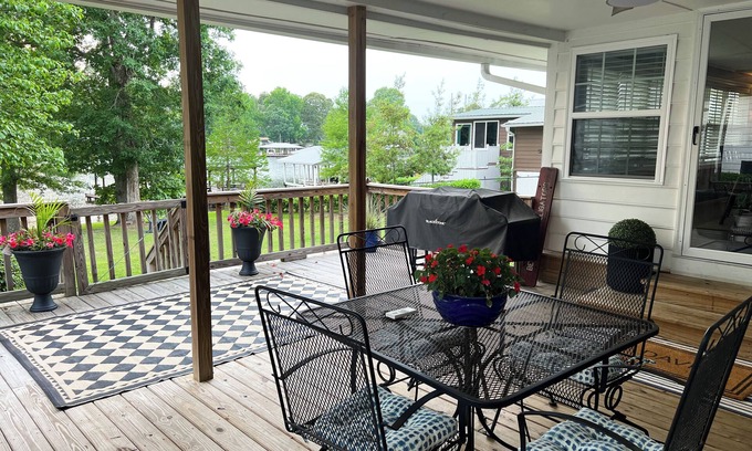 Start your mornings with coffee on the porch overlooking the water, spend your afternoons fishing, boating, or swimming from the private dock, and end your evenings watching the sunset reflect across the lake. Inside, you’ll find spacious living areas, a fully equipped kitchen, and comfortable bedrooms designed for both rest and connection.