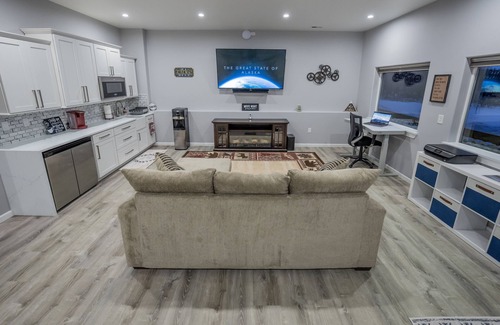 Located on serene and relaxing Seymour Lake, the largest of the Meadow Lakes, The Wolf’s Den is convenient to most of Alaska’s incredible adventure opportunities! Just minutes from Downtown Wasilla and Palmer. Driving north to Hatcher Pass, Talkeetna, Denali or Fairbanks? South to Anchorage or the Kenai Peninsula (Kenai, Seward, Homer)? Out to the Matanuska Glacier or Valdez? This quiet, cozy (yet hi-tech) EXECUTIVE SUITE is a great centrally-located “home base” for your trip!