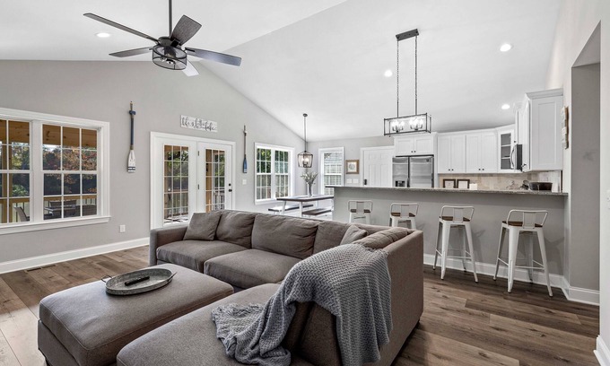 Experience luxury lakeside living at our newly built (July 2021) 2-bed, 2-bath home on High Rock Lake. With a private pier & 3 kayaks + paddleboard, enjoy a day on the water before grilling up dinner & relaxing by the fire pit. Watch your favorite shows on the 70" smart TV or drift off to sleep in a king bed. With an inflatable queen mattress, up to 6 guests can enjoy a comfortable stay. Explore North Carolina's hidden gem, High Rock Lake, with ease!